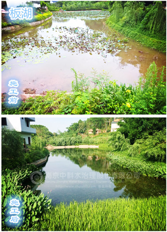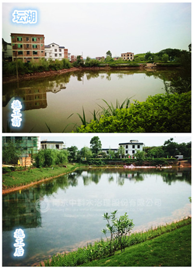 2015年12月12日,中科水治理參與的壇板坡景觀湖水生態(tài)構建工程正式開工,景觀湖位于中心街區(qū)的東部,分為壇湖和板湖兩個獨立的水體,是典型的農(nóng)村污染型水體。水體總面積約15畝,平均水深1.5米,采用中科水治理獨創(chuàng)的“清水型生態(tài)系統(tǒng)構建技術”,主要建設內容包括基底改良、湖形重塑、微生物菌種投放、沉水植物群落構建、挺水、浮葉植物群落構建、魚類放養(yǎng)、大型底棲動物投放等。2016年3月30日,項目順利通過驗收。